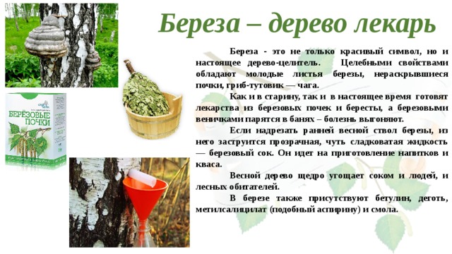 I boccioli, le foglie e la linfa di betulla sono stati usati per scopi medicinali per più di un secolo. I benefici e i danni della linfa di betulla sono dovuti ai suoi elementi costitutivi. Il fluido viene rilasciato quando la corteccia viene tagliata.