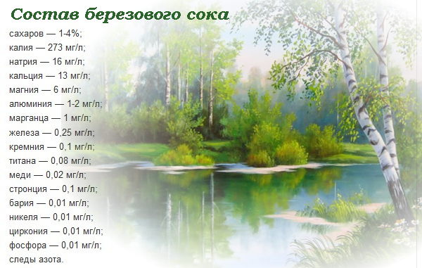 È noto che i benefici della linfa di betulla si manifestano in effetti detergenti, antitumorali e antinfiammatori. La sua ricezione ha un effetto benefico sullo stato del sistema cardiovascolare.
