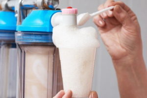 - Circa 100 ml di liquido vengono versati in un bicchiere e vengono mescolati 1-2 cucchiaini di un agente schiumogeno.