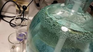 - Combina entrambi i liquidi, mescola. Dopo un po 'inizierà una reazione, a seguito della quale apparirà un sedimento di sostanze nocive sul fondo.