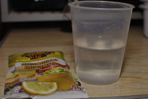 - preparare una soluzione di soda in un barattolo da un litro, versarvi l'acido citrico;