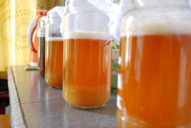 La schiuma significa che il kvas di riso al miele è pronto: può essere filtrato e messo in frigorifero.
