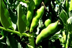 Ampiamente conosciuto per le sue proprietà benefiche nella medicina popolare, il favino è caratterizzato da un cespuglio più potente e da un apparato radicale forte e ben sviluppato, un fusto eretto alto fino a 2 m, foglie grandi, carnose, accoppiate-pennate, verde-blu e grappoli contenenti 10 fiori ciascuno.