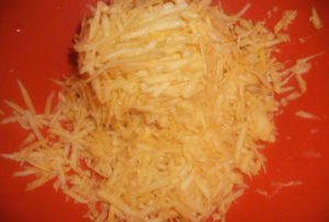 - grattugiare un po 'di rapa fresca su una grattugia fine;