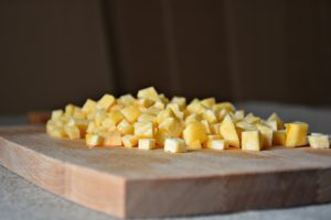 - lavare, pelare e tagliare a cubetti alcune piccole rape;