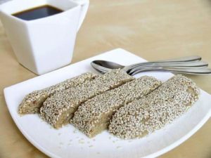 - I semi di sesamo vengono fritti in una padella calda senza aggiungere olio vegetale fino a doratura. Se necessario, è possibile acquistare semi di sesamo tostati, ma il prezzo sarà molto più alto.