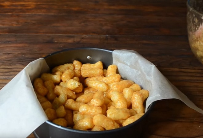 Un piatto tipico ha solo quattro ingredienti: semola di mais macinato, olio, sale e zucchero a velo. Allo stesso tempo, i bastoncini hanno un alto contenuto calorico: 325 calorie per 100 g di prodotto.