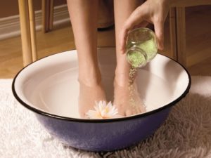 Per il raffreddore, la sindrome da stanchezza costante delle gambe, con naso che cola e tosse, si consiglia di sollevare le gambe con bicarbonato di sodio: il vantaggio sta nel fatto che l'agente ha un effetto disinfettante e antinfiammatorio. In 2 litri di liquido caldo, aggiungi 2 cucchiai grandi di bicarbonato di sodio, a questa concentrazione, le proprietà non danneggeranno la pelle.