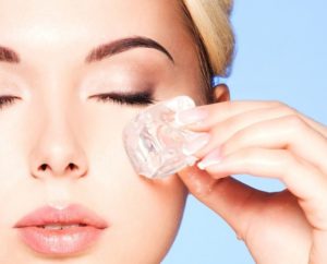 - Преди да избършете, трябва да измиете лицето си с хладка вода, за да подготвите лицето си за въздействието на студа и да не навредите на кожата поради температурни промени.