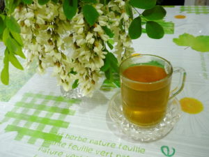 Към чая се добавят съцветия от робиния. Приема се при настинки, женски заболявания, проблеми с бъбреците и стомаха. Също така лечебните свойства на чая от акация се използват при простатит. Като цяло напитката е от полза за цялото тяло: укрепва имунната система, облекчава безпокойството и депресията и успокоява нервната система.