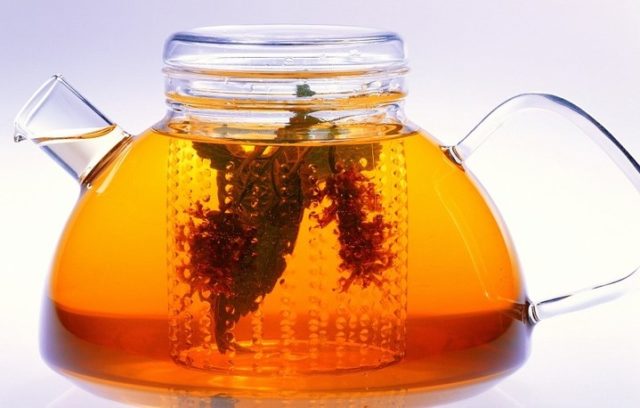 - измерете малка лъжица суровини и залейте 300 мл гореща вода.