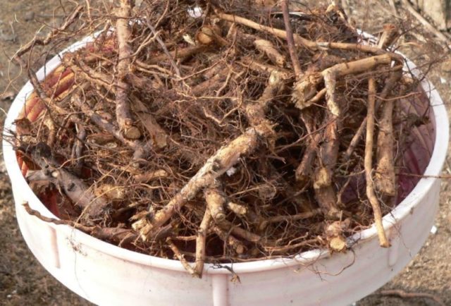 Събраните суровини се измиват старателно от земята и след това се нарязват на малки парчета с остър нож.За да приготвите корени от шипка, трябва да ги разнесете върху лист за печене на тънък слой и след това да ги оставите на сенчесто място с добра вентилация за няколко часа. Когато детайлите загубят малко влага и изсъхнат, те могат да се поставят във фурната при 40-50 ° C.