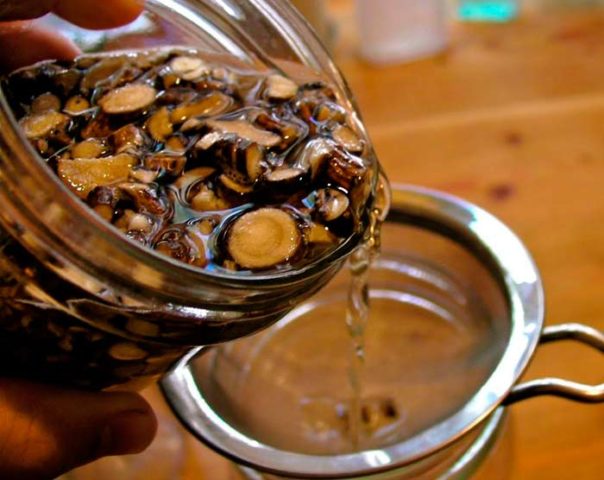 - след като изтече времето, готовата тинктура се прецежда през тензух.