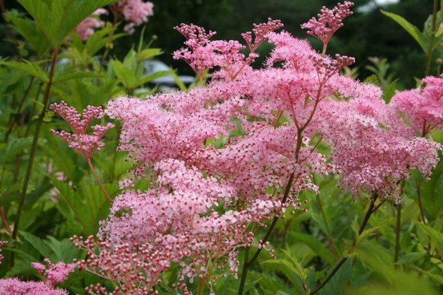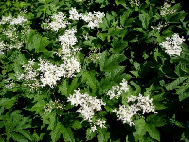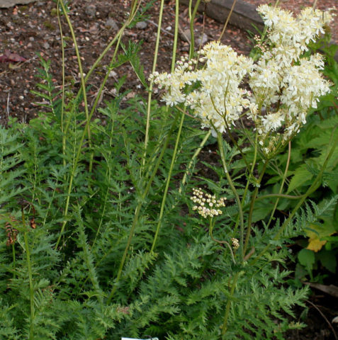 Северноамерикански вид ливадна сладка с височина на храста до 2,2 м. Силуетът на растението се разпростира, стъблата са червенокафяви и покрити с разчленени листа. Той навлиза в декоративния период през юли или началото на август, съцветията са пухкави, щитовидни, състоят се от бяло-розови пъпки.