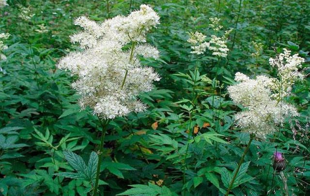 Най-често срещаните видове ливадни сладки в Русия, често растящи по бреговете на резервоари. Прилича на хлабав храст с височина до 1,5 м, с тъмнозелени перасти листни плочи. Цъфти през юни или началото на юли, съцветията на брястолистните ливадни сладки са големи, кремави.