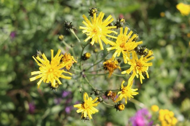 От май до август ястребът дава светложълти пъпки, събрани в сенникови или метликови съцветия. Плодовете на растението са цилиндрични семки с черен цвят с дължина около 2 мм.