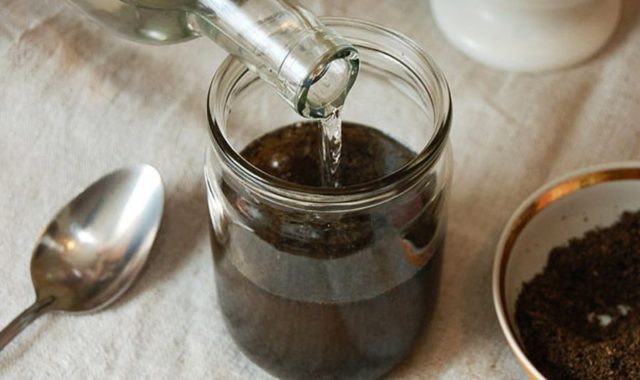 - 10 г суха трева се изсипва в 250 мл гореща вода;