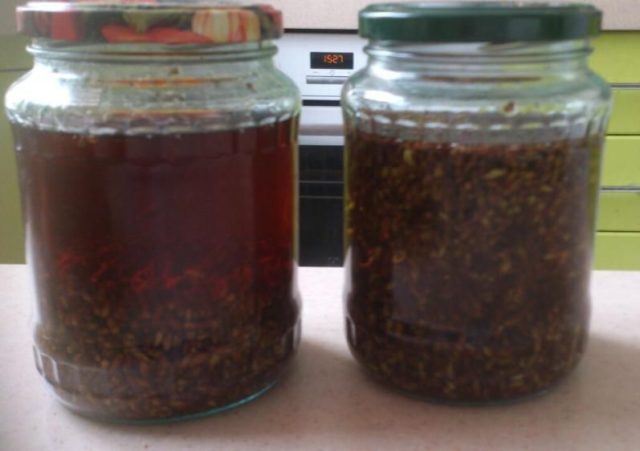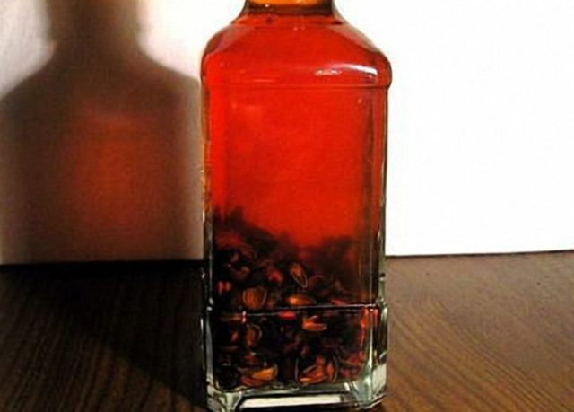 - 100 г съцветия и шишарки се заливат с 500 мл водка или алкохол;