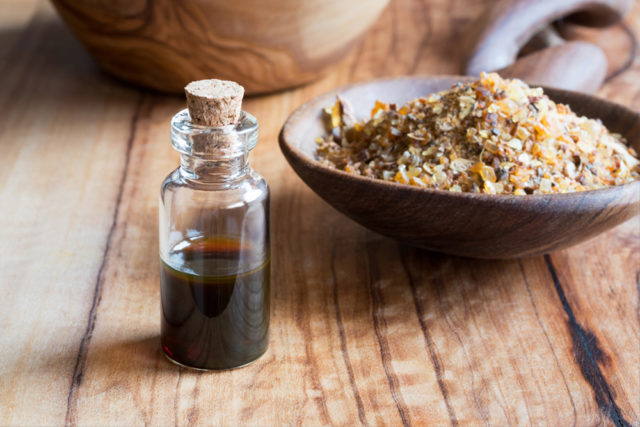 Тинктура от смирна се приготвя на основата на етеричното масло на растението. Рецептата изглежда така: