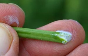 От външната страна на листа има светлозелени ивици. Стъблото е покрито с остисти израстъци. |