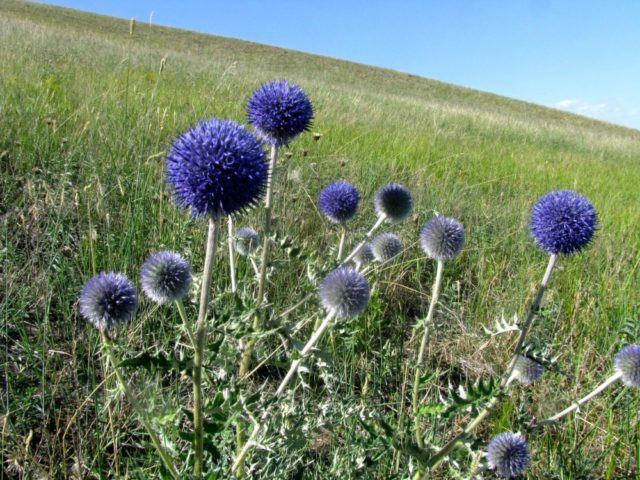 - Обикновени (Echinops ritro). Растението има компактни размери, носи малки лилави, по-рядко сини или бели съцветия.
