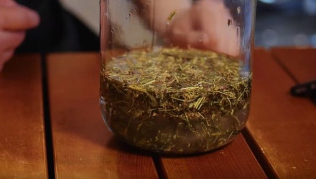 - 100 г сухи суровини се изсипват в 1 литър 70% алкохол;