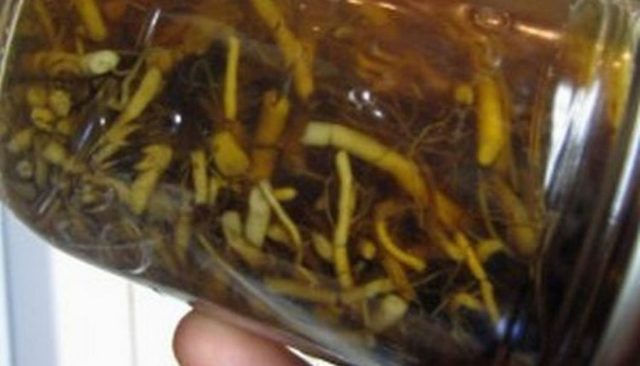 По принцип традиционната медицина използва ножни части под формата на лечебна тинктура. В силния алкохол най-добре се разпределят ценните вещества в състава на растението. Пригответе лекарството, както следва: