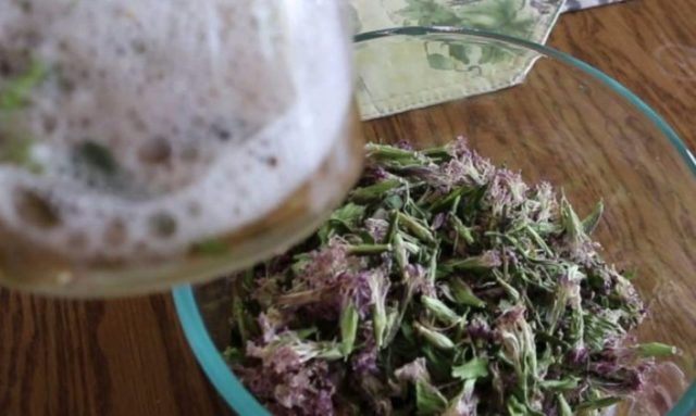 - Смелете 15 г суха трева и залейте с чаша вряла вода.