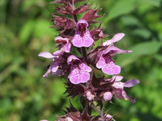 През юли и август обикновената туршия израства малки лилави пъпки с дължина до 1,5 см. Чашката на цветята е петкратна, бодлива, а на долната устна на венчето се вижда бял модел.