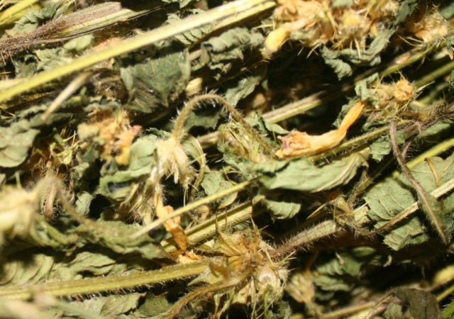 - Сухите стъбла и листа се натрошават в количество от 30 g.