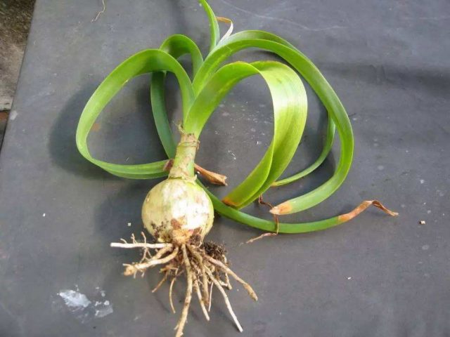 Индийският лук или домашните птици е тревисто многогодишно растение с височина от 30 до 85 см. Расте от яйцевидна луковица, покрита с плътни люспи. От долната му част се простират бели кореновидни корени.
