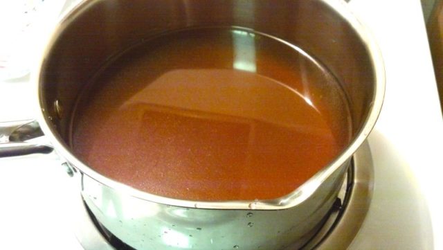 - добавете 30 мл алкохолна тинктура от индийски лук към охладения продукт.