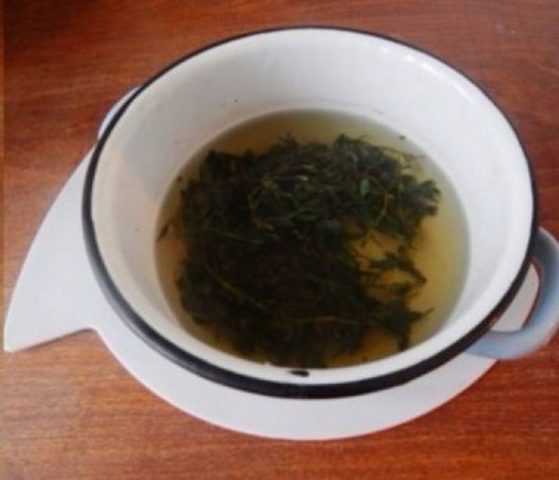 - 50 г суха трева се изсипва в 500 мл топла вода;