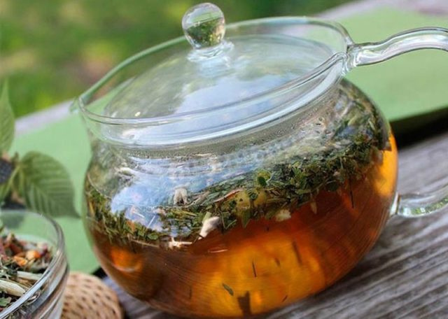 - три малки супени лъжици сухи билки се заливат с чаша вода;