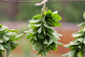 - Тревата се събира на гроздове, завързва се с канцеларски ластик. Освен това е направена кука от тел, за която монетен двор е окачен на въже на сенчесто място.