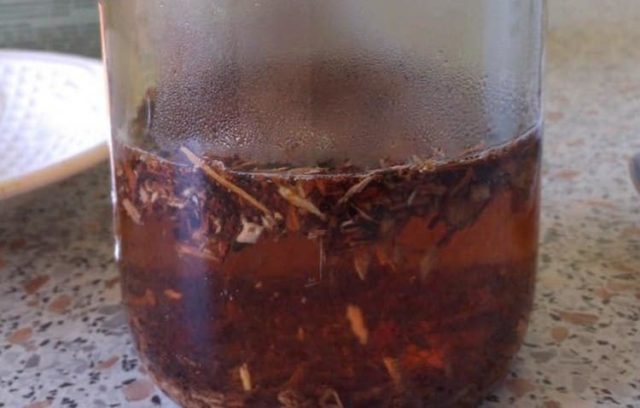 Разклащайте буркана всеки ден през първите седем дни. Приготвеният продукт от плодови зърна се прекарва през тензух за филтриране и напитката се консумира три пъти на ден, 30 ml.