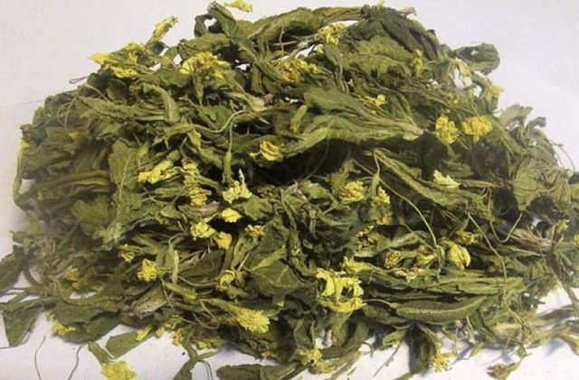 - Голяма лъжица натрошени листа и цветя се залива с вряща вода в обема на чаша.