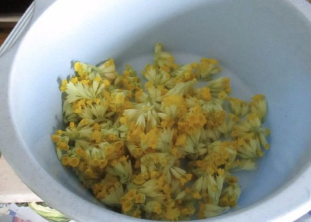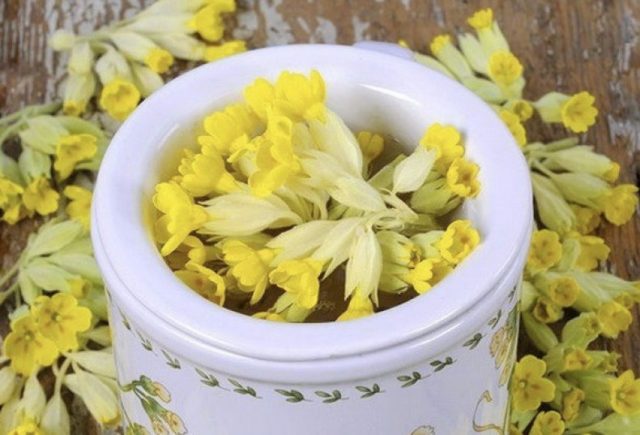 - 20 г суха билка пролетна иглика се изсипва в 200 мл течност.