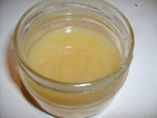 - Компонентите се смесват старателно и се загряват на слаб огън за два часа.