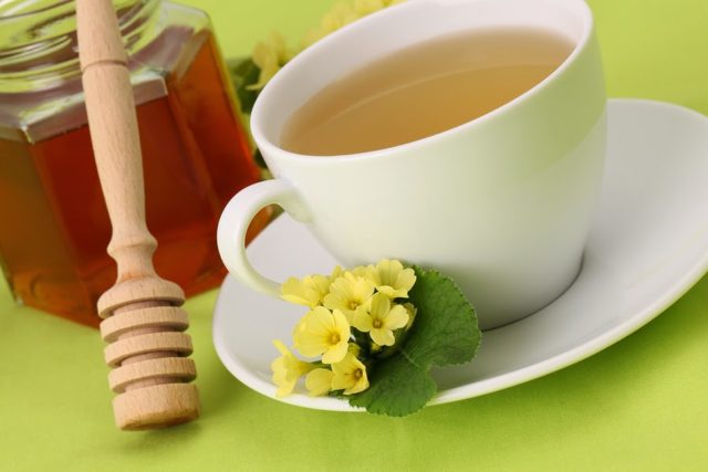 - Две големи супени лъжици сухи листа от пролетна иглика се заливат с 400 мл гореща течност.