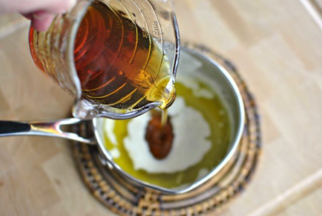 - Компонентите се поставят в дълбок съд и се смесват, докато се получи хомогенна консистенция.