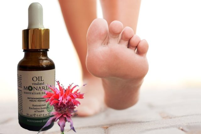 Monard етер може да се използва за лечение на гъбична инфекция на ноктите и отлепване. Трябва да се смесва с всяко растително масло. Краката трябва да се измият преди обработка. Процедурата се извършва преди лягане.