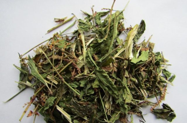 - Суха трева в количество от две големи лъжици се запарява с 500 мл вряща вода.
