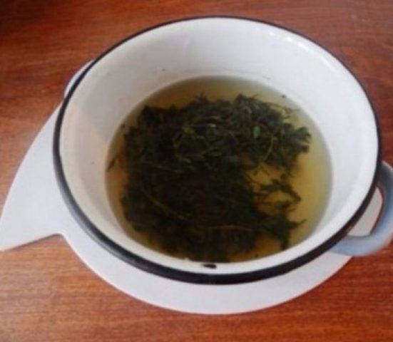 - От листата на растението се приготвя обичайна отвара, която след това се разрежда наполовина с чиста вода.