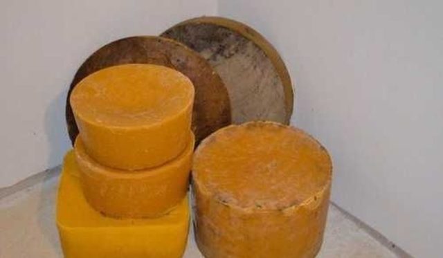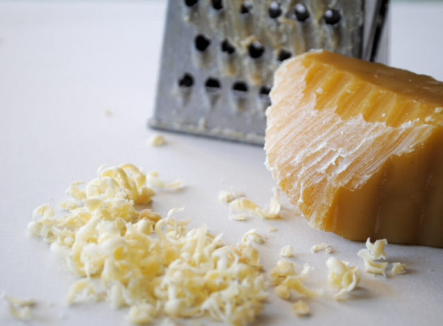 - 50 г пчелно вещество се втрива върху фина ренде;