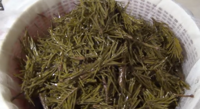 - младите иглички и тънки клони на растението се измиват с хладка вода, изсушават се и се нарязват на ситно;