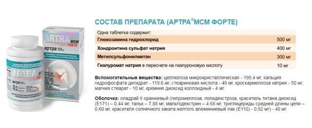 - 2 Състав на таблетки Artra с хиалуронова киселина