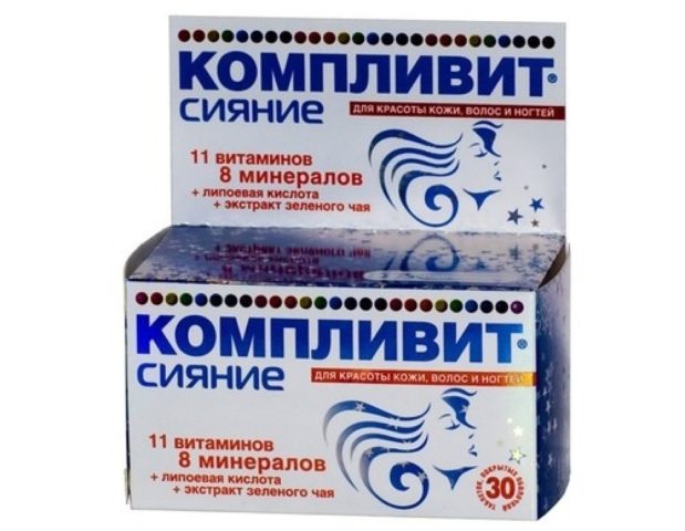 Излъчването на компливит се отличава със съдържанието на цинк, витамин В и желязо. Благодарение на тези компоненти, лекарството помага да се отървете от сухата кожа и да намалите вероятността от обриви. Продължителността на приема на витамини е един месец. Средната цена на пакет е 200 рубли.
