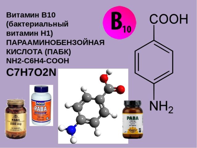 Параминобензоената киселина или витамин В10 трябва да се приемат ежедневно. Дневната доза е 100 mg. Ако се лекува хипо- или бери-бери, тогава количеството му се увеличава до 4 g.