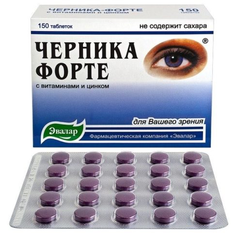 Лекарството се счита за един от най-добрите витаминни комплекси за профилактика на зрението. Офталмолозите позволяват да се използва от деца на възраст от 3 години. Те имат естествен състав, поради което са безопасни за тялото. Blueberry Forte помага за стабилизиране на зрението, регенерира увредените клетки на окото, подобрява микроциркулацията и нормализира вътреочното налягане. Освен това е качествен витамин за кръвоносните съдове на очите. Курсът на прием е от 2 до 4 месеца, въз основа на препоръките на специалист.